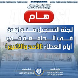 لجنة تسجيل الطلبة الجدد في جامعة الشيخ الطوسي متواجدة في أيام العطل (الأحد والاثنين) لمساعدتكم في إكمال المرحلة الأولى من …