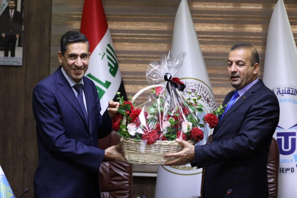 وقّعت جامعتنا اتفاقية توأمة وتعاون علمي مشترك مع الجامعة التقنية الوسطى، وذلك خلال مراسيم التوقيع التي أُقيمت في رئاسة الجامعة التقنية الوسطى بمحافظة بغداد بحضور الأستاذ الدكتور قاسم الأسدي رئيس الجامعة والوفد المرافق له، والأستاذ الدكتور وضاح التميمي رئيس الجامعة التقنية الوسطى.