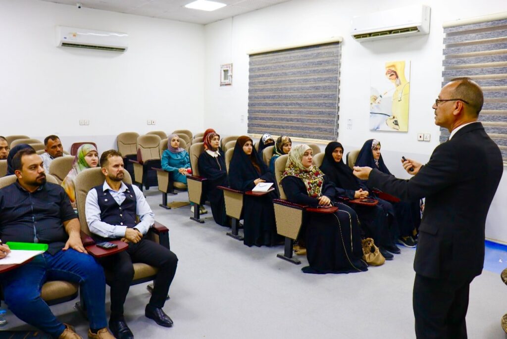 عميد كلية التمريض يشارك بمحاضرة في دورة السلامة والأمن البايولوجي بجامعة جابر بن حيان